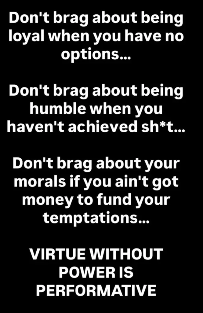 Maybe I wanted power all along, but in lieu of having it, I instead virtue signalled about right and wrong in order to assert moral superiority over people who did not display the “correct” morals.